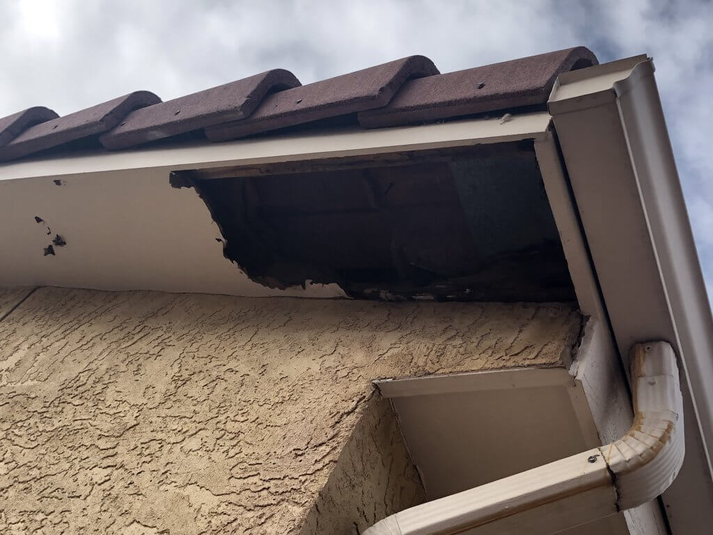 Although the fascia and soffit are complementary, they have different functions. The fascia is the long piece of horizontal trim usually made of wood or aluminum. It covers and protects the rafter ends around the perimeter of the roof. While it does protect from moisture intrusion, it also gives the home a more appealing and finished look.
